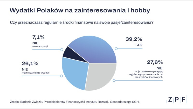 Z badania ZPF i IRG SGH wynika, że 39,2 proc. Polaków regularnie ponosi koszty związane z finansowaniem swoich zainteresowań. Ci, którzy tego nie robią (60,8 proc.), zwykle uzasadniają odpowiedź ważniejszymi wydatkami, brakiem konieczności płacenia za hobby, ale też brakiem pasji.