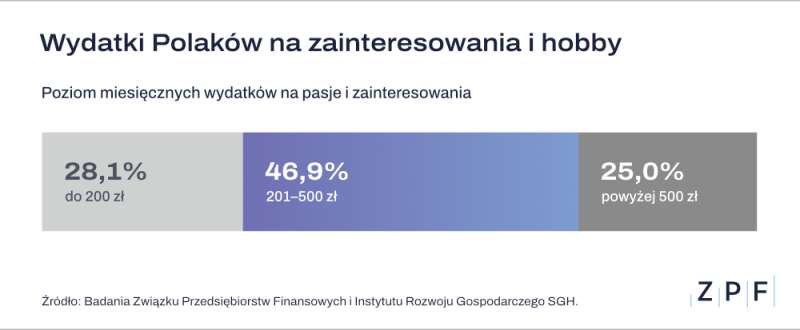 - Osoby, które wskazały, że zainteresowania i pasje wiążą się u nich z regularnymi wydatkami, zwykle przeznaczają na ten cel kwoty w przedziale 201-500 zł miesięcznie - wskazuje Agnieszka Kozioł, dyrektor Departamentu Raportów i Analiz ZPF. - Jedna czwarta badanych w tej grupie wydaje nawet ponad 500 zł miesięcznie - wylicza.