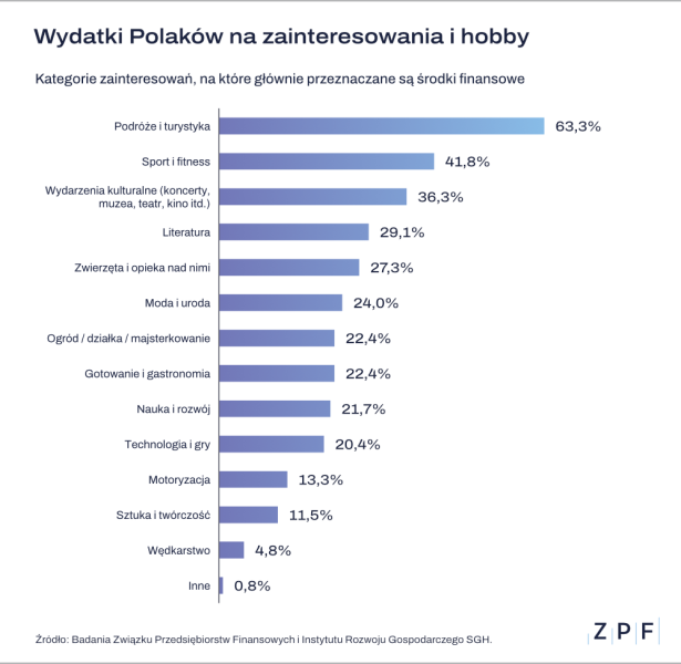 W cyklicznym badaniu kondycji finansowej gospodarstw domowych, prowadzonym przez Związek Przedsiębiorstw Finansowych w Polsce (ZPF) oraz Instytut Rozwoju Gospodarczego Szkoły Głównej Handlowej (IRG SGH), tym razem Polacy zostali zapytani o wydatki związane z własnymi zainteresowaniami i pasjami.